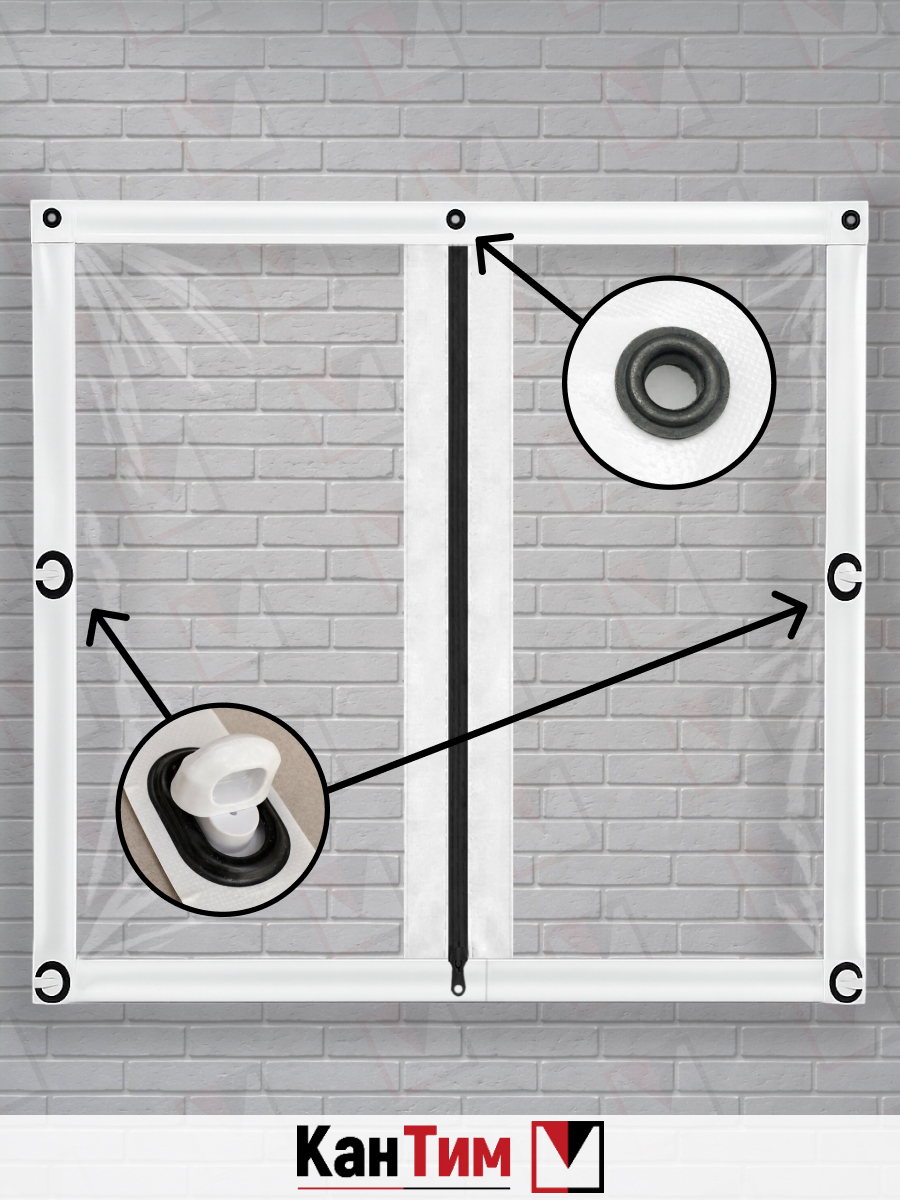 Мягкое ПВХ-окно 700 мкм | Коричневая окантовка | Поворотная скоба Ширина: 100