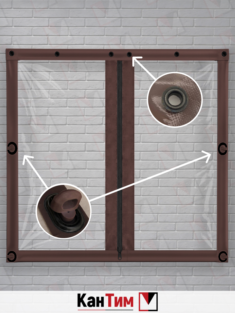 Мягкое ПВХ-окно 700 мкм | Коричневая окантовка | Поворотная скоба Ширина: 100