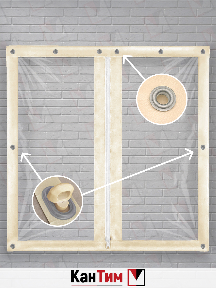 Мягкая ПВХ дверь с молнией в центре 700 мкм | Бежевый кант | Поворотные скобы Ширина 100 см Высота 230