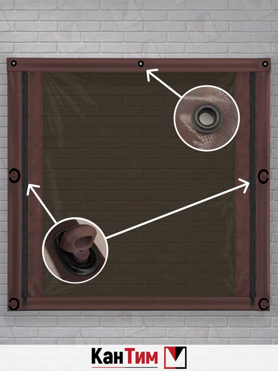 Мягкое ПВХ-окно 700 мкм | Коричневая окантовка | Поворотная скоба Ширина: 100
