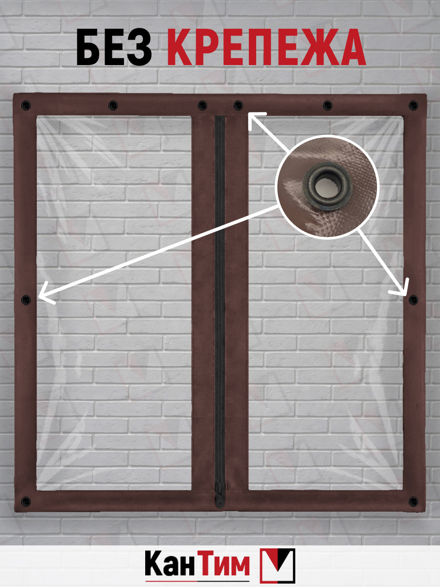 Мягкое ПВХ-окно 700 мкм | Коричневая окантовка | Поворотная скоба Ширина: 100